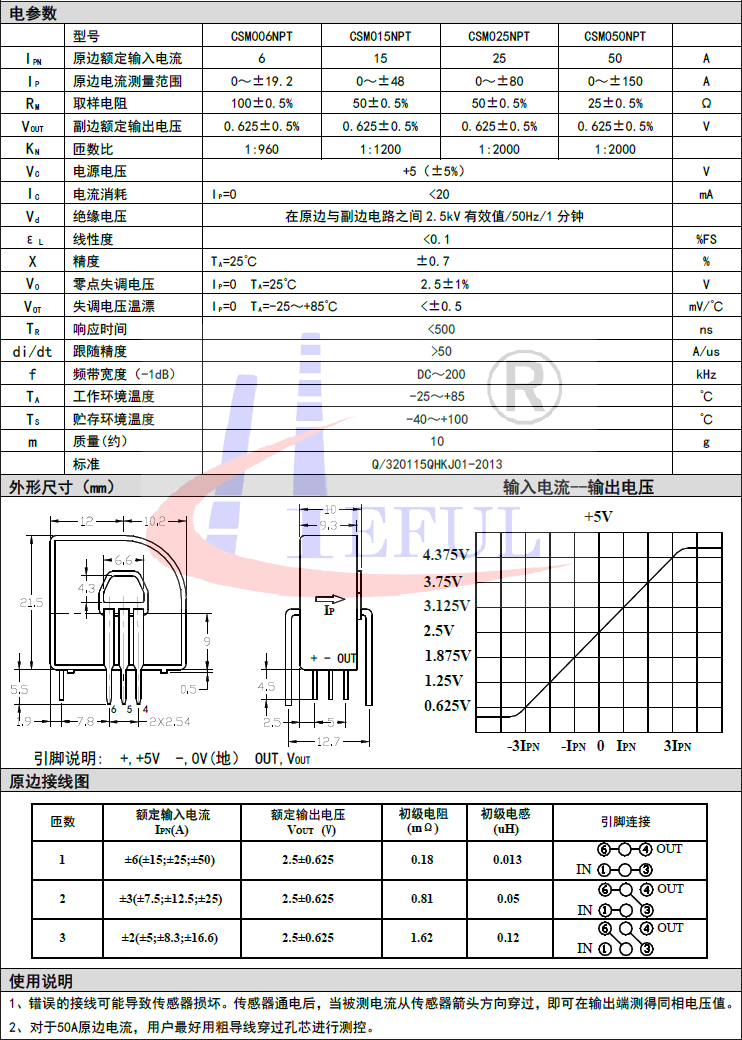 應(yīng)用霍爾效應(yīng)閉環(huán)原理的電流傳感器,能在電隔離條件下測量直流、交流、脈沖以及各種 不規(guī)則波形的電流。 型號:CSM050NPT系列 訪問:20515次 產(chǎn)品手冊下載
