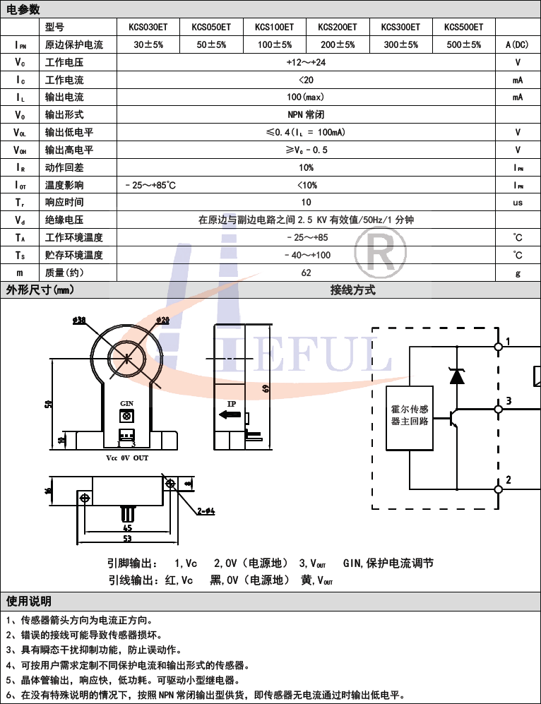 應(yīng)用霍爾效應(yīng)開環(huán)原理的電流傳感器,能在隔離條件下對(duì)直流電流信號(hào)實(shí)現(xiàn)開關(guān)量輸出, 實(shí)現(xiàn)過流進(jìn)行保護(hù)的功能。