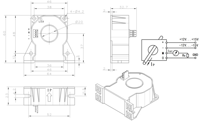 引腳說明:+,+15V -,-15V M,IOUT 0,GND |