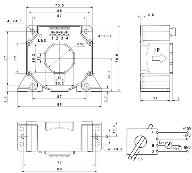1、錯(cuò)誤的接線可能導(dǎo)致傳感器損壞。傳感器通電后,當(dāng)被測(cè)電流從傳感器箭頭方向穿過(guò),即可在輸出端測(cè)得同相電流值。 2、在正常工作情況下,有效指示燈處于常亮狀態(tài)。如果指示燈熄滅,說(shuō)明電流傳感器處于非零磁通狀態(tài),如母線電流超過(guò)量程等。此時(shí),傳感器內(nèi)部進(jìn)入掃描狀態(tài),輸出電流不再與輸入電流信號(hào)等比例,一旦母線電流回落到量程之內(nèi),傳感器即恢復(fù)正常工作。 3、測(cè)量電阻是指測(cè)量直流電流時(shí)。若測(cè)量交流電流時(shí),測(cè)量電阻降低到70%。R 4、原邊測(cè)量導(dǎo)線或銅棒溫度不要超過(guò)100℃。 |